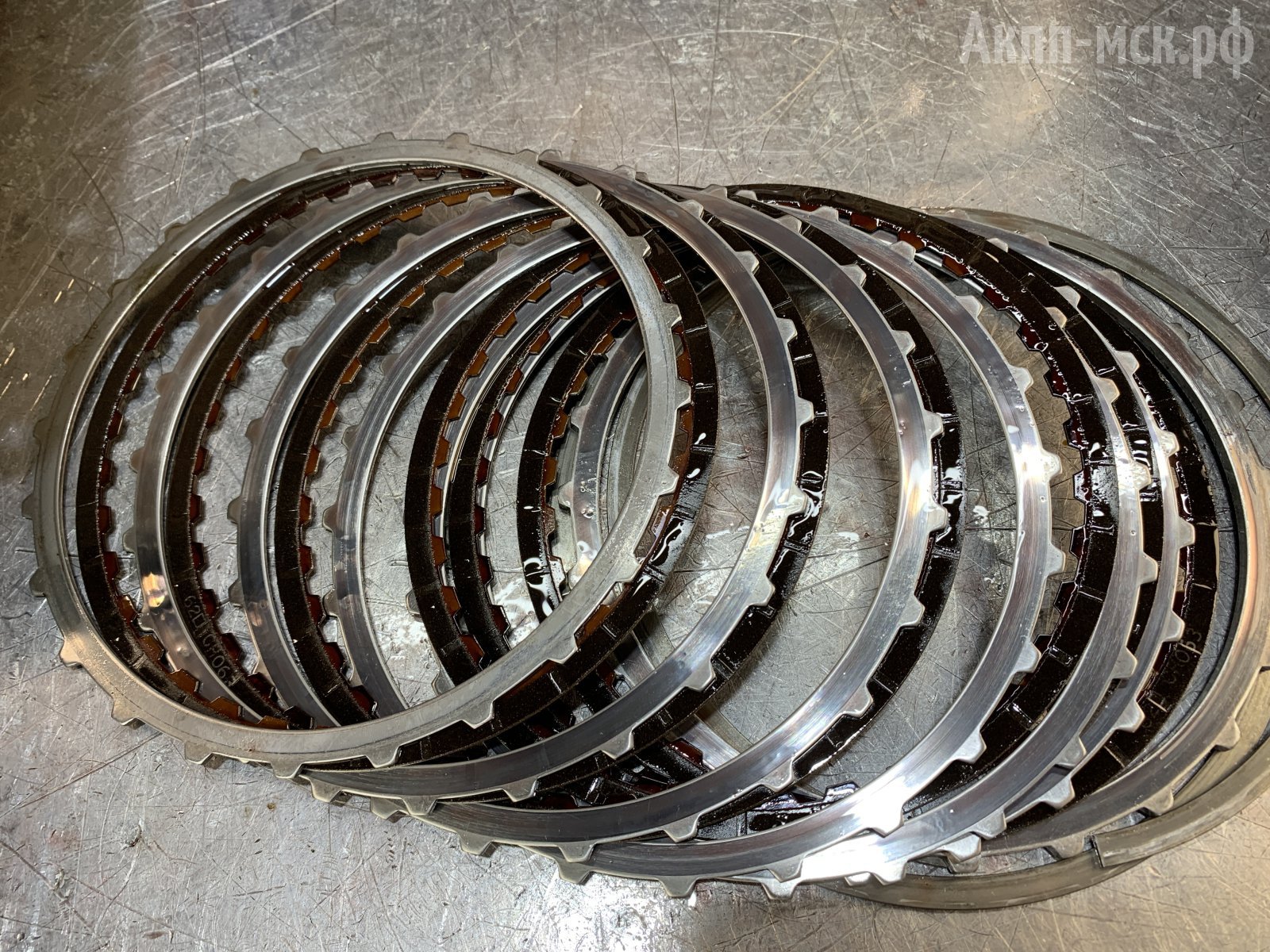 Фрикционы все меняем вместе с комплектом стальных дисков, потому что есть пакеты подгоревших стальных дисков, которые повреждены именно фрикционами. Металл терся об металл.